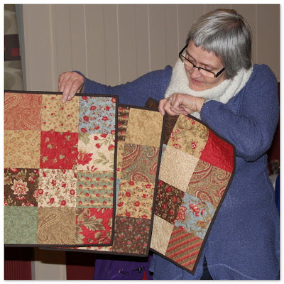 Ny leder ble Heidi Bolgnes som her takker for en bunke ferdige blokker fra januarmøtets håndssømkurs. Styret tar gjerne i mot flere....